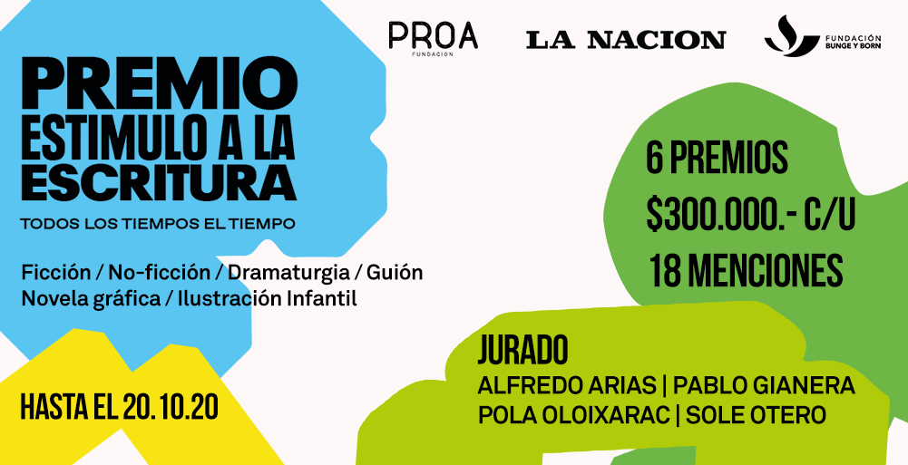 Co-organizado por la Fundación Bunge y Born, Fundación Proa, y el diario La Nación, el Premio Estímulo a la Escritura Todos los tiempos el tiempo es un concurso destinado a personas de 20 a 40 años que deseen presentar obras-in-progress en una de las seis posibles categorías: Ficción, No-Ficción creativa, Guión, Dramaturgia, Novela Gráfica, y Libro álbum ilustrado infantil.