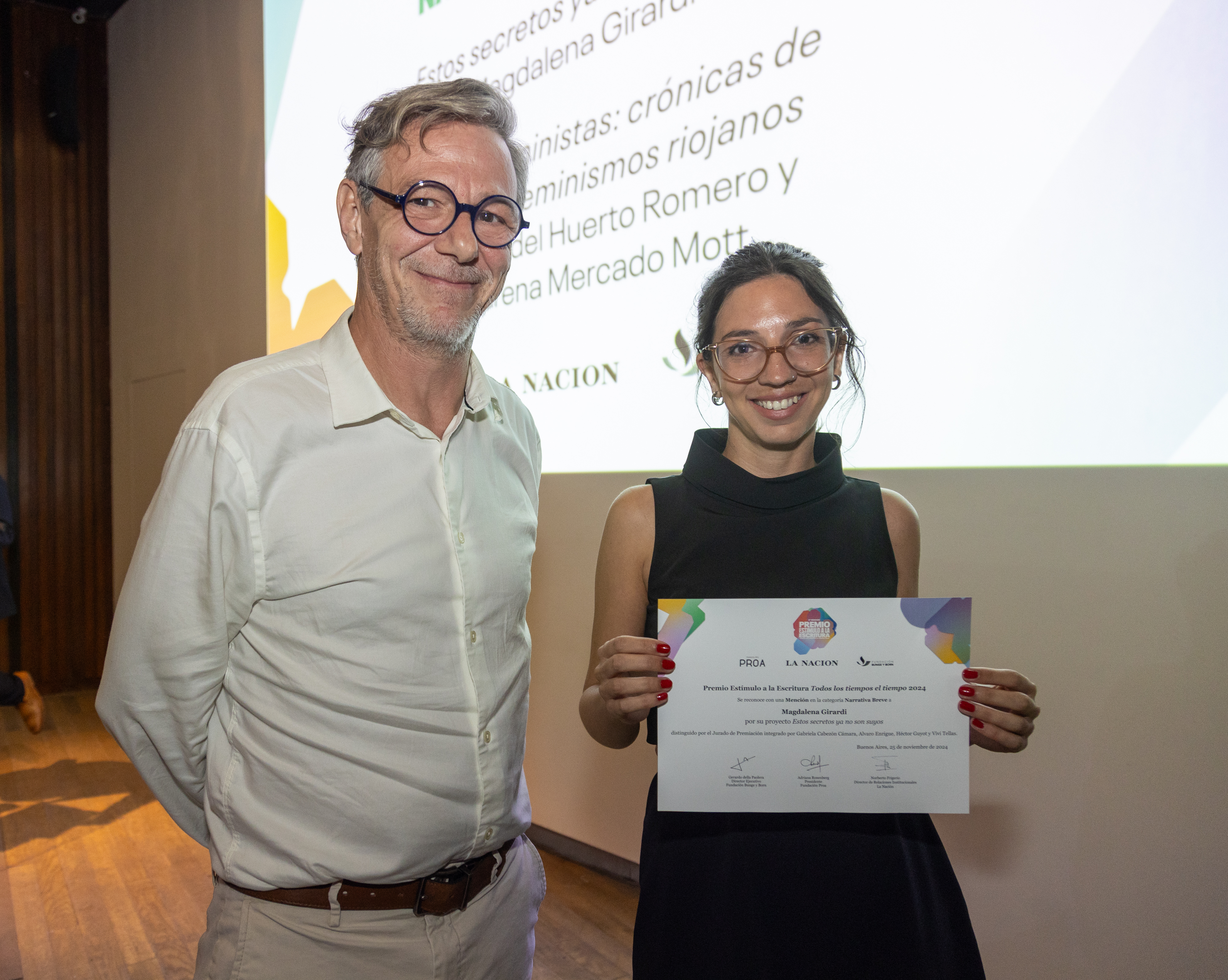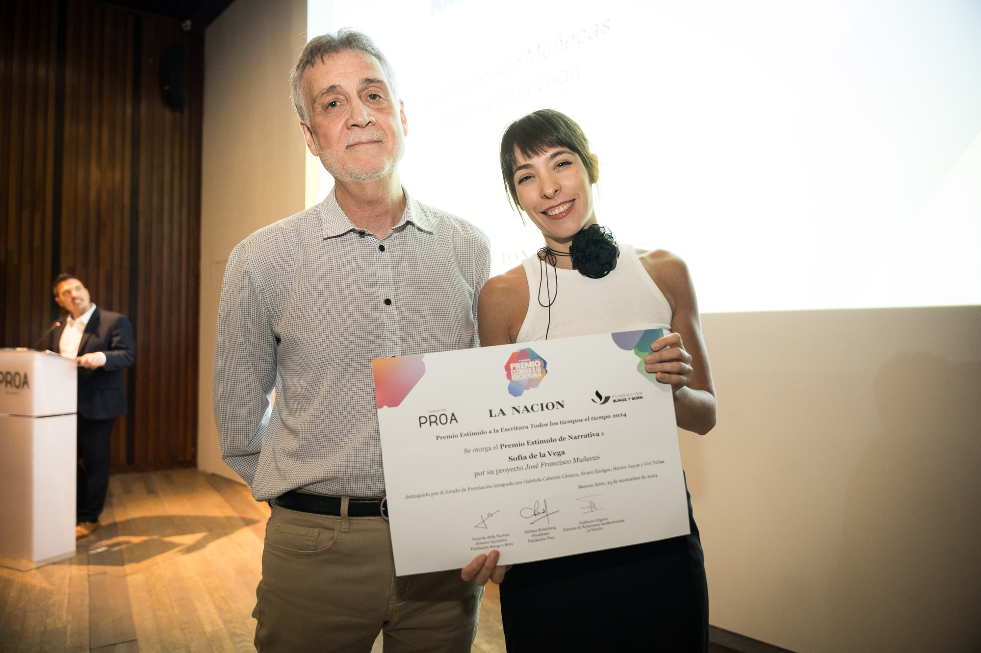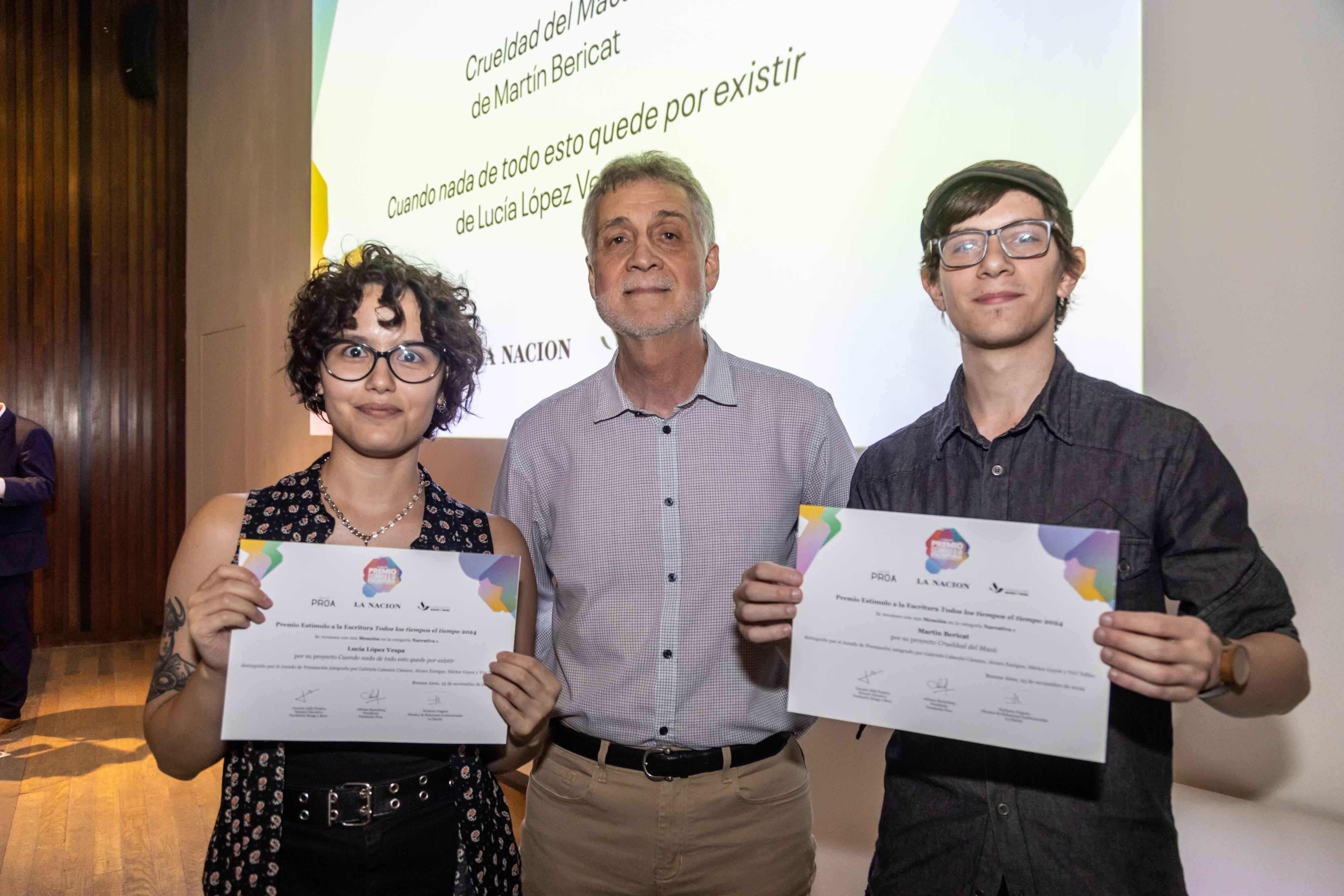 También estuvieron presentes los representantes de las entidades organizadoras: Adriana Rosenberg, Directora de Fundación Proa; Norberto Frigerio, Director de Relaciones Institucionales de La Nación; Ezequiel Bacher, Gerente de Comunicación y Asuntos Públicos de la Fundación Bunge y Born; y Gastón Solari Yrigoyen, Coordinador general del Premio.