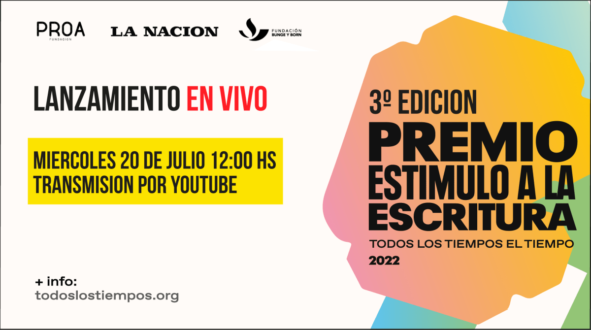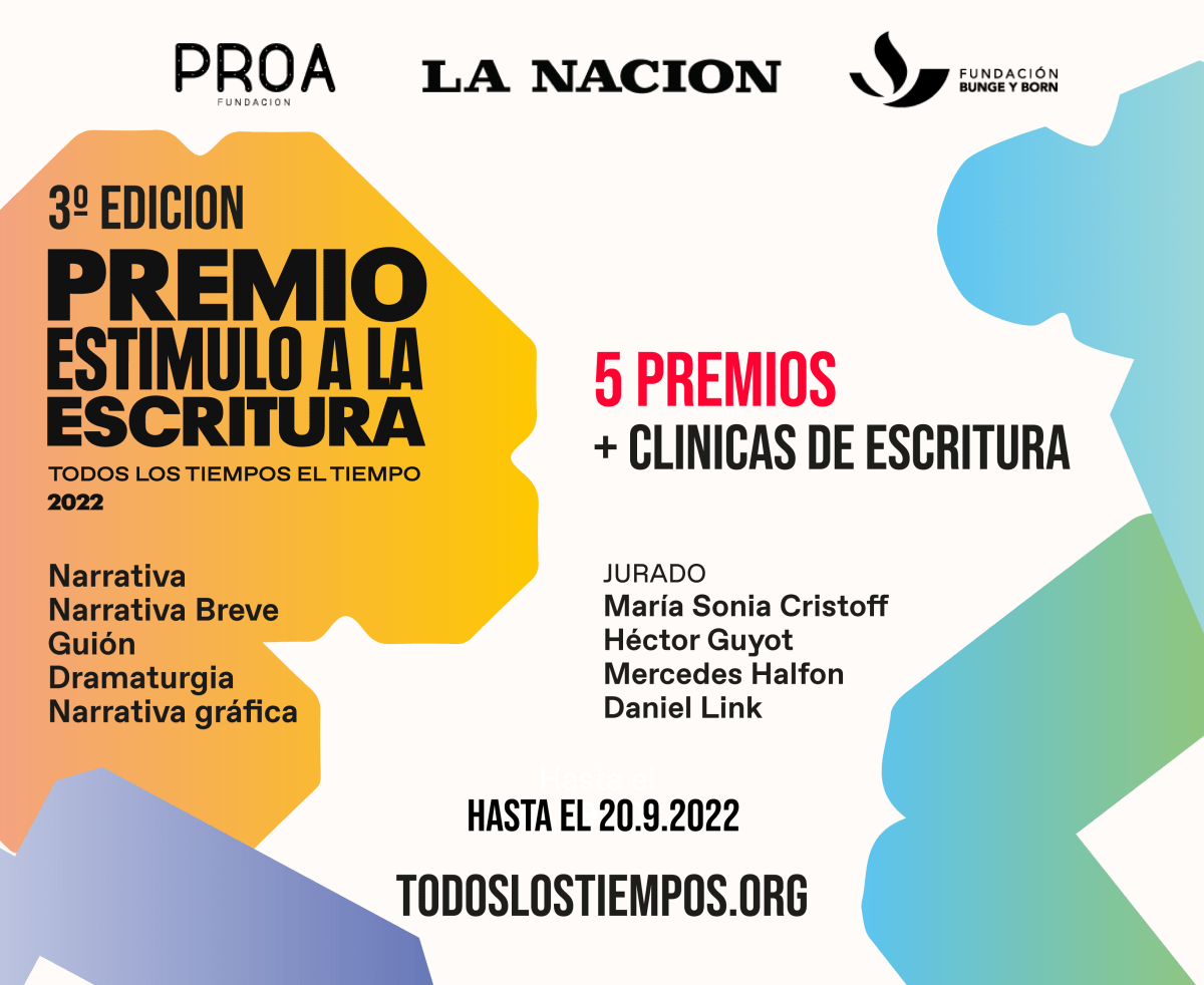 La Fundación Bunge y Born, Fundación Proa y La Nación tienen el agrado de anunciar la apertura de la quinta convocatoria del Premio Estímulo a la Escritura Todos los tiempos el tiempo.